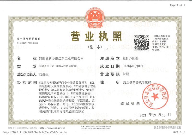 河南省新鄉市啟東工業有限公司始建于1987年,是專注研發、生產自動化儀器儀表(主要與壓力容器、鍋爐等容器配套使用)的廠家。主要產品有液位計(磁敏雙色型、磁翻柱型等)系列、烤包器熄火聯控裝置系列、壓力容器快開門安全聯鎖保護裝置系列、鍋爐報警器系列。二十多年來,公司產品暢銷國內并遠銷俄羅斯、蒙古與東南亞,深得廣大用戶的信賴和好評。我們多年來致力于自動化儀器儀表的研制生產,公司現具有完善的生產、試驗、檢測手段和設備。科技創新、誠信服務,是我們不變的經營理念,我們將以強有力的技術支持及售后竭誠為客戶提供良好的服務?! ?012年我公司成功研發了KCL系列烤包器熄火聯控裝置,并于2013年2月2日榮獲中華人民共和國國家知識產權局辦法的《實用新型**證書》<**號:2021202257735>該產品廣泛應用于唐鋼等大型鋼鐵企業,為烤包器安全作業提供了有力的保障。  2002年我公司成功研發磁敏電子雙色液位計獨特的高亮度LED紅綠雙色顯示,獲得了專家的首肯和用戶的一致好評。在此基礎上我公司研發人員十年磨一劍,致力于XQFB-1防爆型磁敏雙色液位計的研發,于2013年12月27日由國家防爆電器產品質量監督檢驗中心檢驗合格并頒發防爆合格證書<編號:cnex19.0883>。該產品性能得到了充分的發揮,廣泛應用于含有Ⅱ類A·B級T1-T4組可燃氣體或蒸汽與空氣混合形成的爆炸性混合物的0區、1區危險場所。連接用戶DCS或PLC系統實現遠距離集中顯示和控制,從而實現節能、數字化管理。為用戶增加了一定的經濟效益和社會效益,。2014年公司成功申請了夢潤儀表的logo,新的品牌新的形象,夢潤儀表是啟東的LOGO, 歡迎新老用戶前來洽談合作。  我們一如既往地注重科研的投入,憑借產品的不斷更新、加大科技含量,進一步拓展市場。我們相信品質成就未來,以過硬質量、優惠價格、完善的售后服務熱忱歡迎廣大客戶來我司視察指導、洽談業務;精誠合作,共創輝煌!